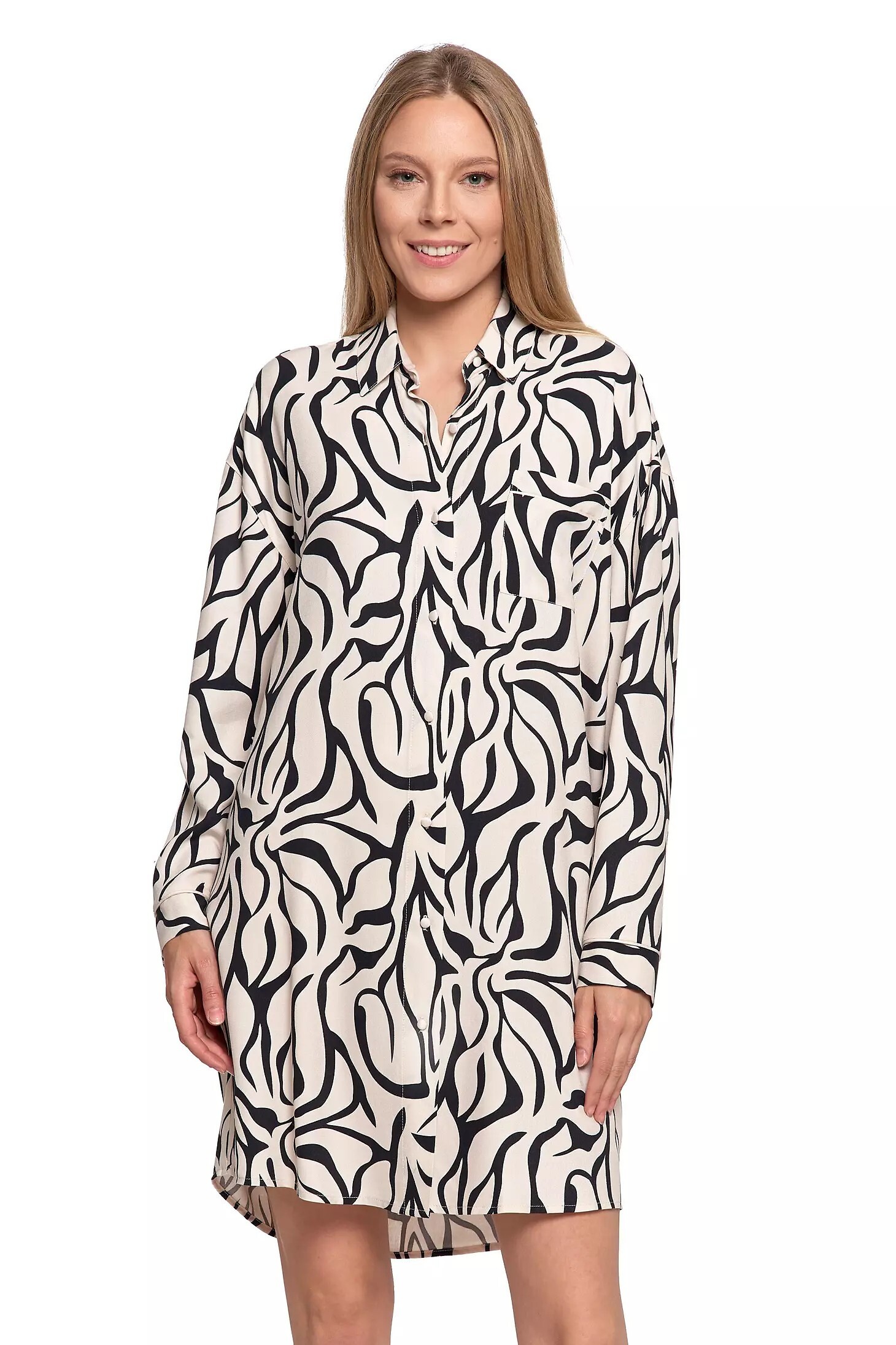 - klasyczny, koszulowy krój z dÅ‚ugimi rÄ™kawami i zapiÄ™ciem na guziki