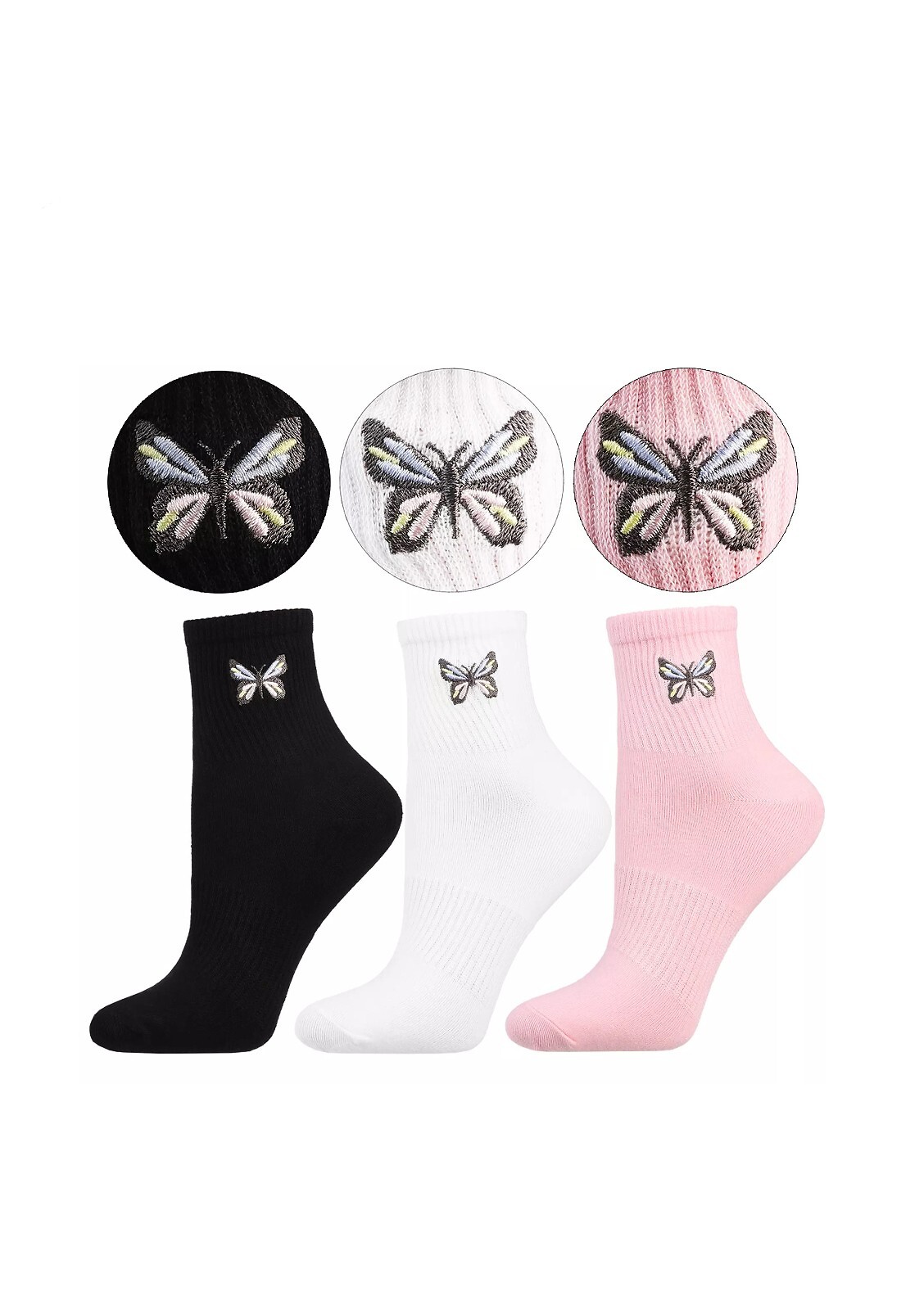 - ozdobione kolorowymi haftem z motylem