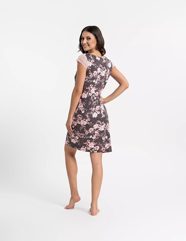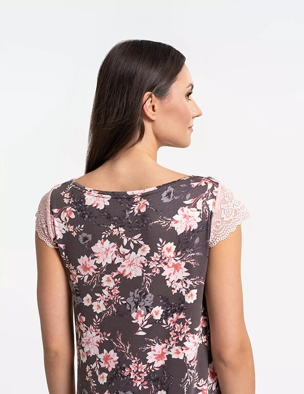 - dekolt i rękawki z ażurowej koronki