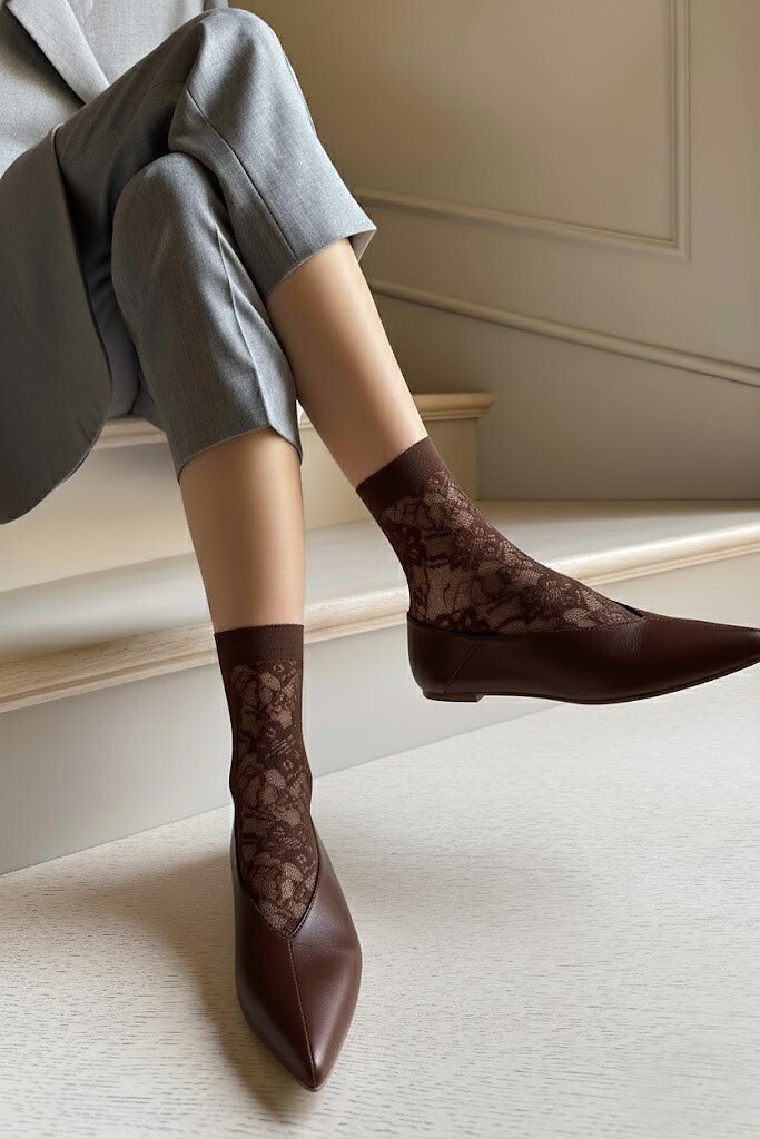 Skarpetki damskie z ażurowej dzianiny