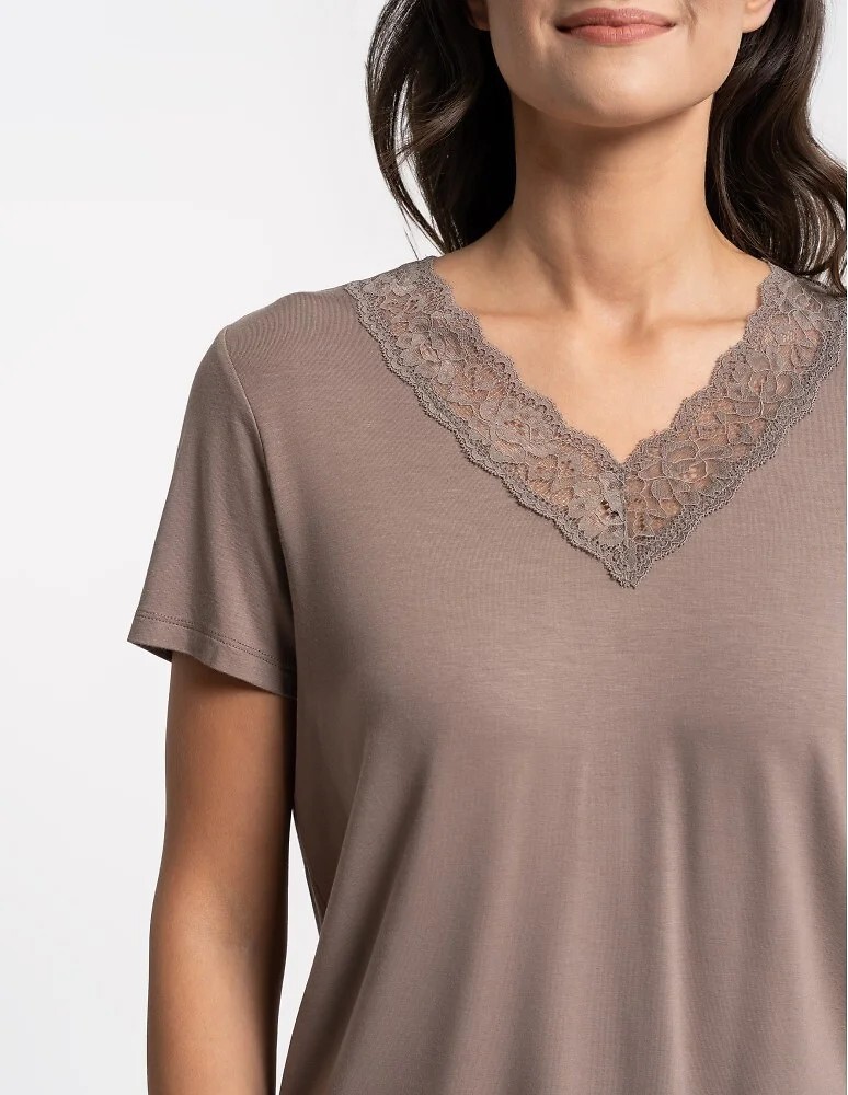 - dekolt i nogawki wykończone koronką o kwiatowym motywie