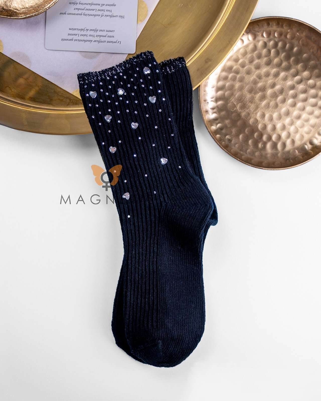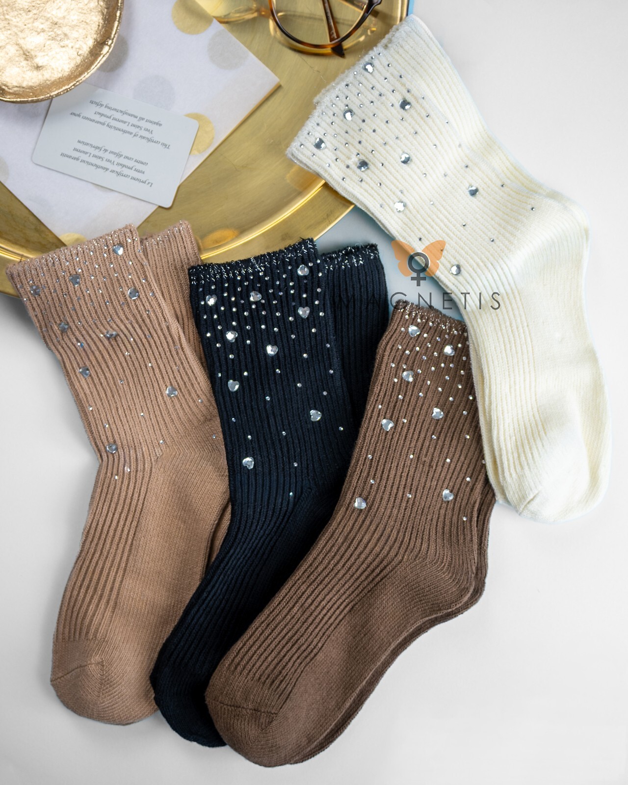 - cholewka w prążek ozdobiona połyskującymi dżetami i błyszczącymi serduszkami