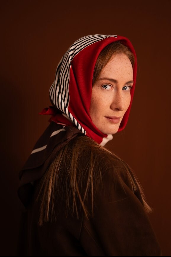 Kwadratowa chusta z motywem pasków