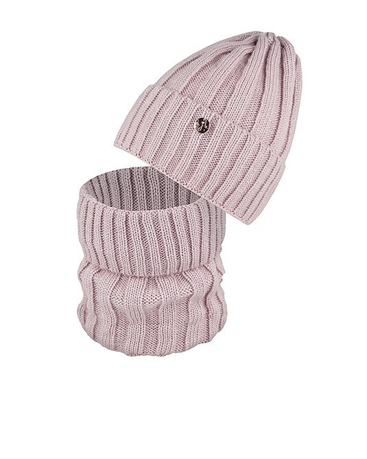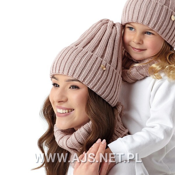 - czapka z miękkiej dzianiny w prążek
