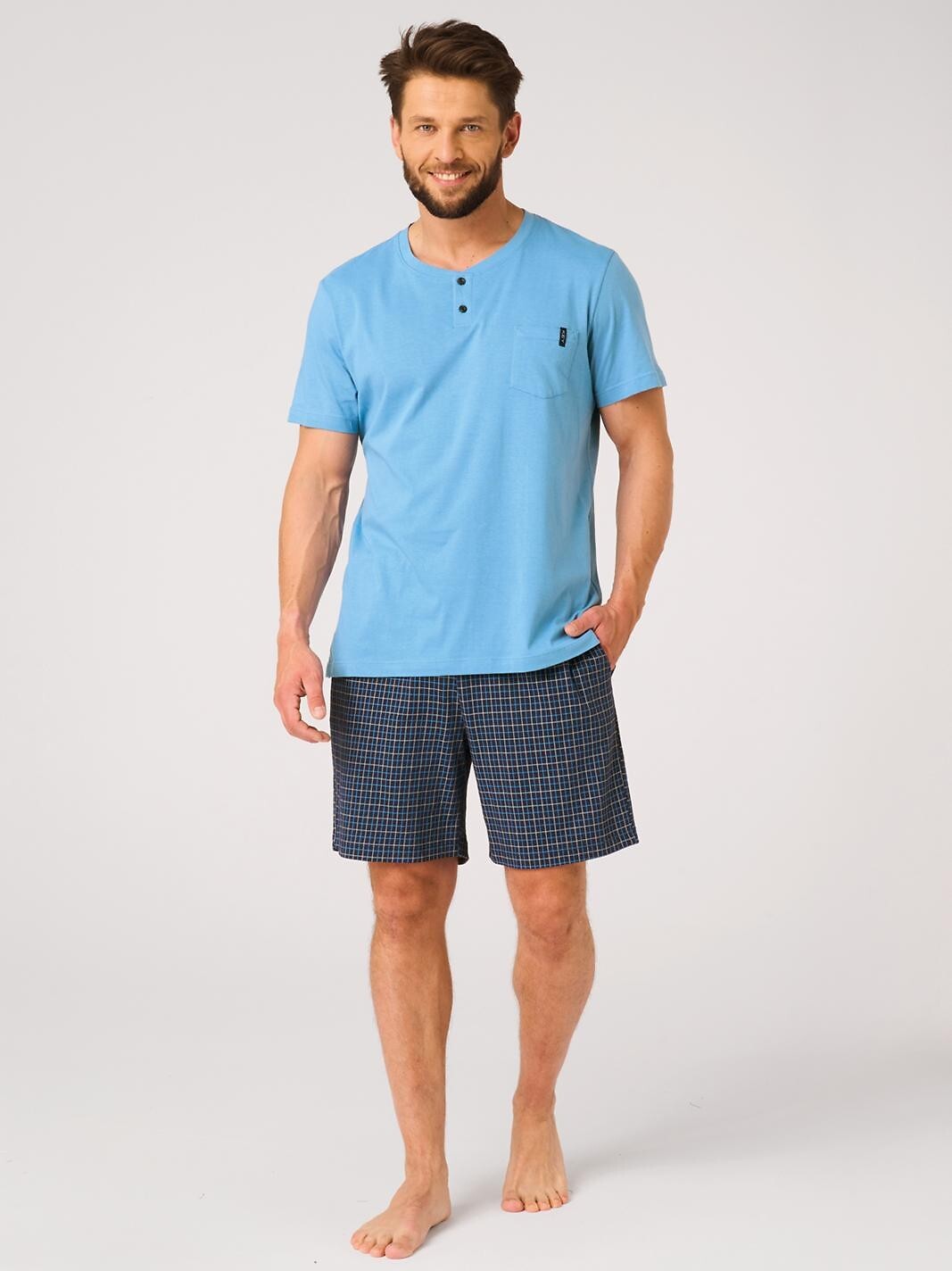- do kompletu krótkie spodenki w kratkę