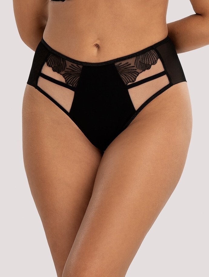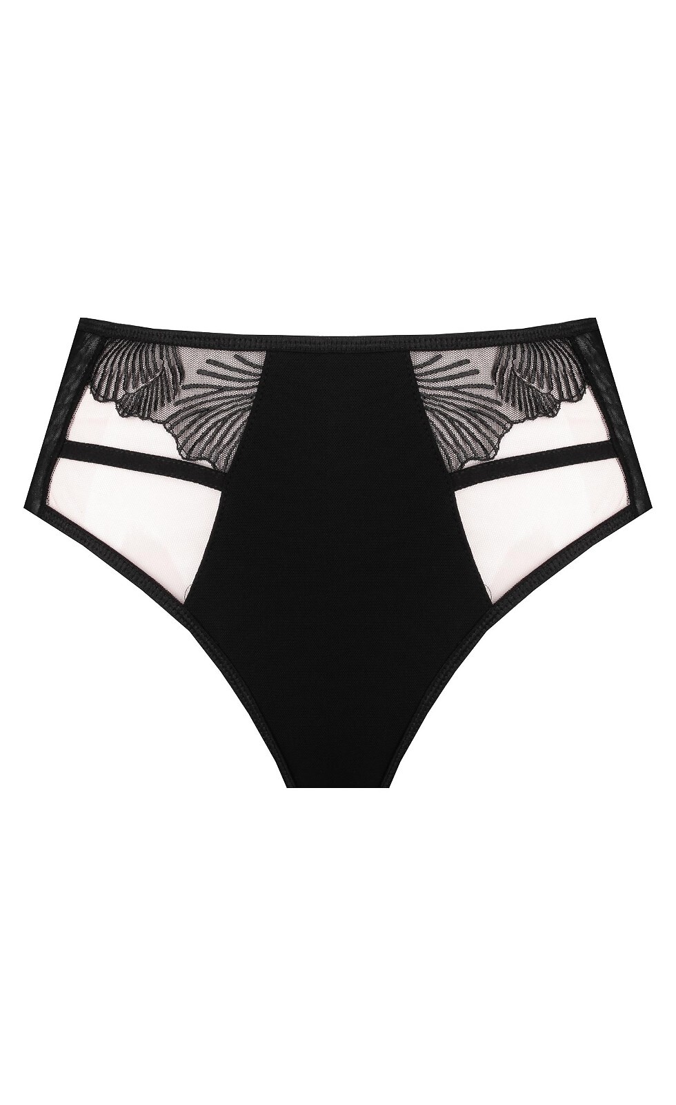 - z połyskującej mikrofibry, transparentnej siateczki zdobionej haftem