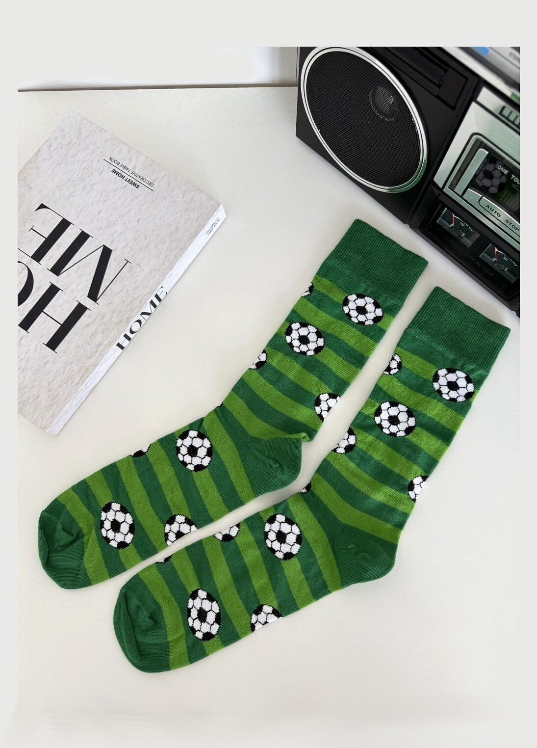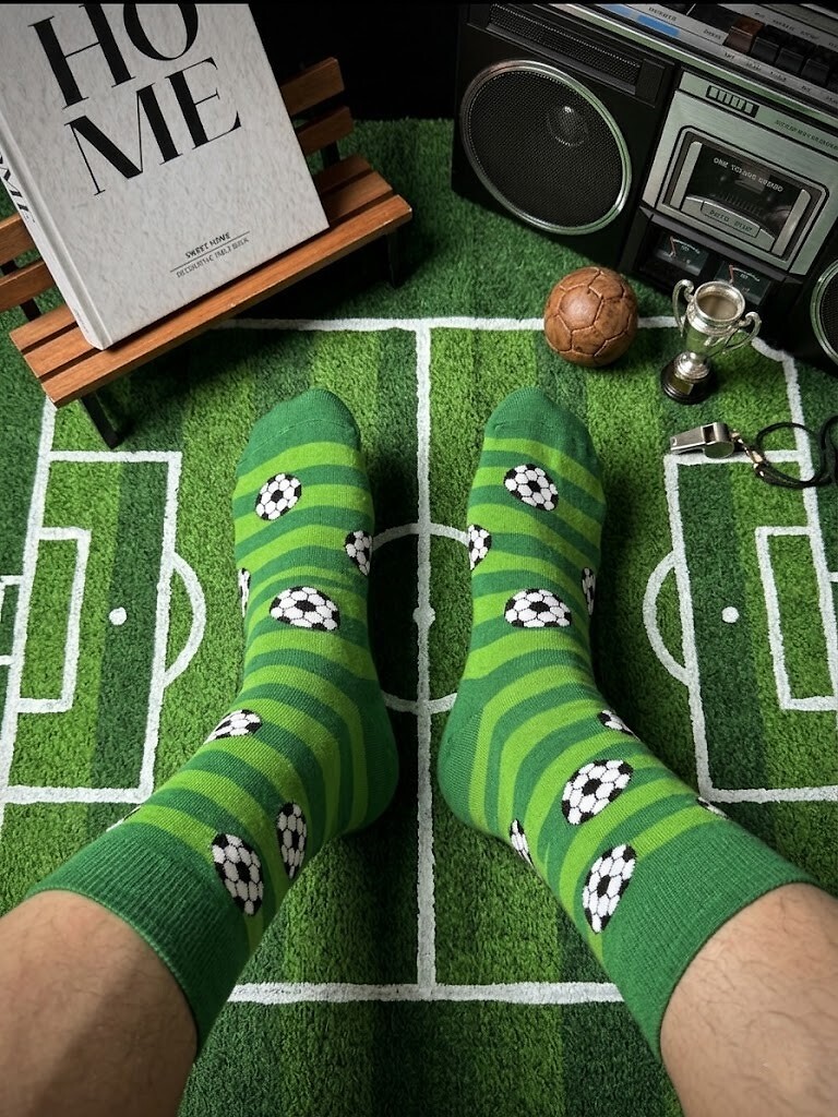 - ozdobione wzorem w piłki i paski