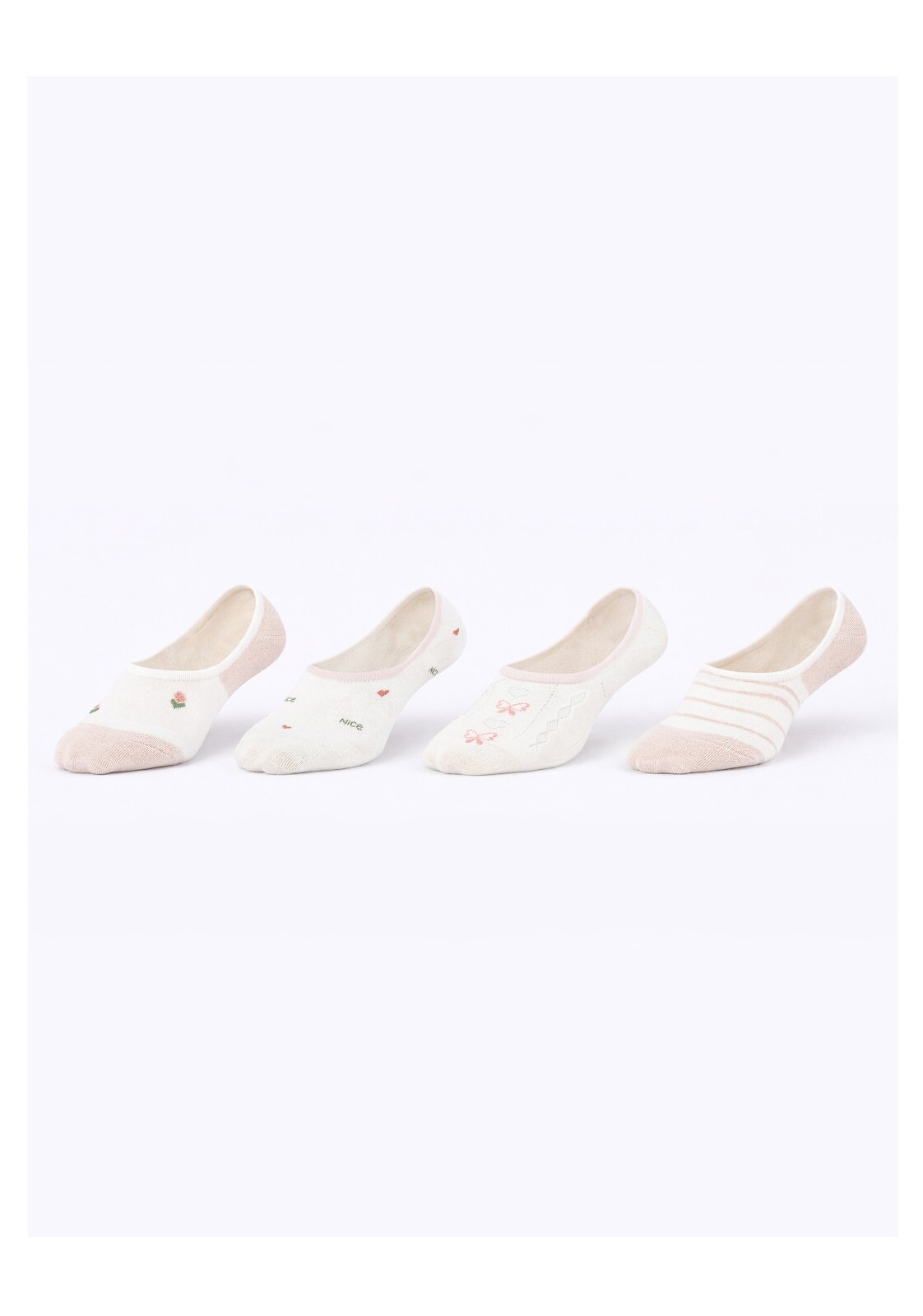 - dostępny kolor ecru, ozdobiony wzorami w paski, kwiatki, serduszka i kokardki