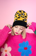 - czapka typu beanie ze zwierzęcym printem leopard